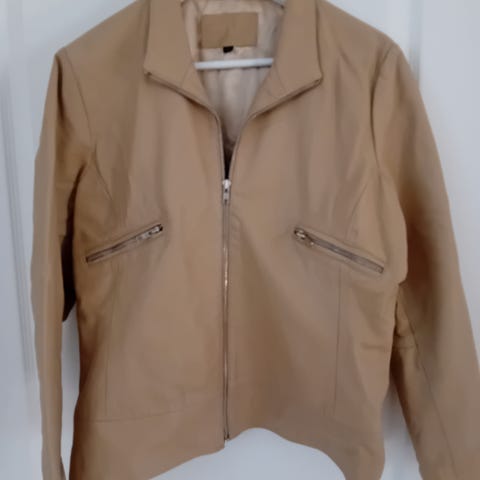 Svart imitert skinnjakke str XL, står XXL på den, men er mer XL.