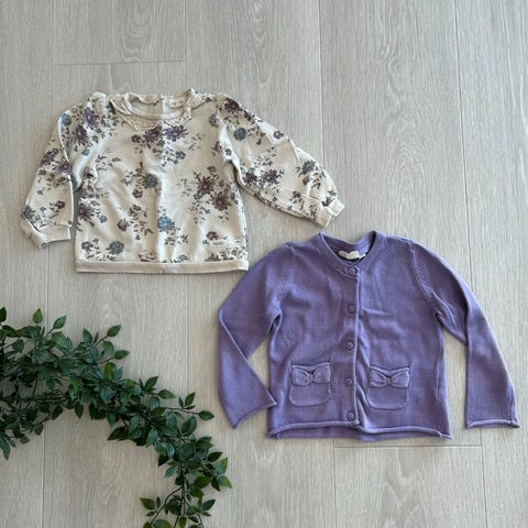 2 ull overdeler og ei bukse for jente i størrelse 92, rosa og brun