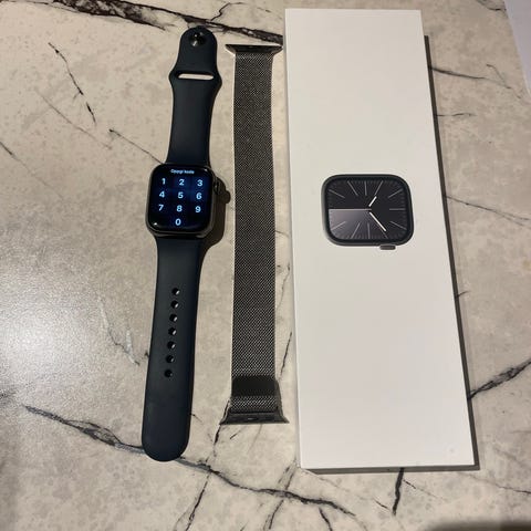 Apple Watch 10 med cellular 42mm i naturlig titan kjøpt i oktober i fjor som fortsatt fungerer strålende og ser ut som ny med ingen riper eller skrapemerker. Batterikapasitet på 94%.