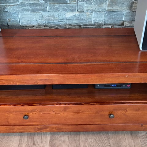 Tv- benken: høyde 26 cm, bredde 50 cm, lengde 105,5 cm.