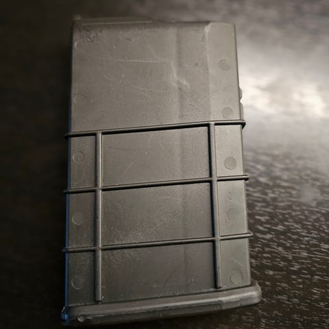 Solid magasinutløser som sitter mellom magasin og avtrekkerbøyle