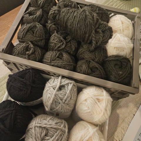 17 garnnøster er i emballasje, mens 27 nøster er åpnet.