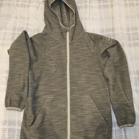 Bergans Bryggen Youth Jakke, fleecejakke, polyester, med hette, størrelse 152, farge blå med oransje detaljer .lJakken er unisex og egnet for barn.