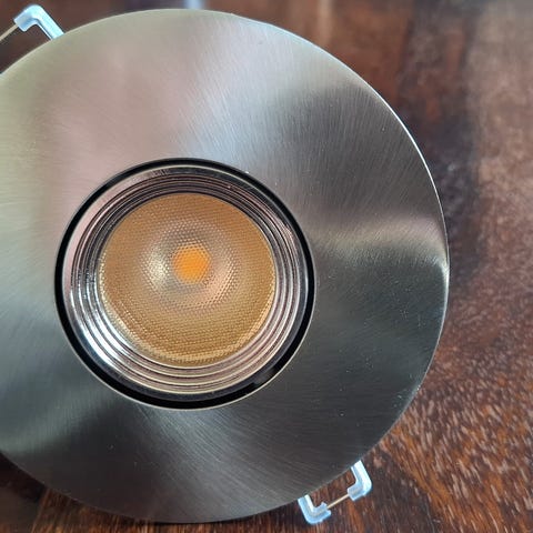 9 esker, med innfelt downlight med 3 lyskilder på 50W i hver. Lampen har GU10 sokkel og er beregnet for 230V strømtilførsel. Totalt 27 lamper. 5 sett har hvit farge og 4 sett er blanke, se bilder. NY PRIS