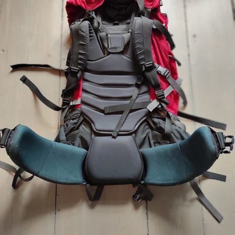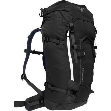 Rydder i utstyret. God sekk for lengre turer. 95 liter og farge sort. Topplokket kan også tas av og brukes som hoftetaske. Fremstår somlite brukt.