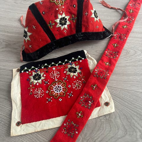 Håndbrodert hardangersøm til bunadskjorte barn.