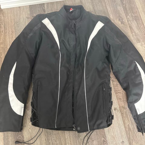 Nesten ikke brukt kanskje ubrukt. Gode polstringer i skuldre og albue. Store solide glidelåser.