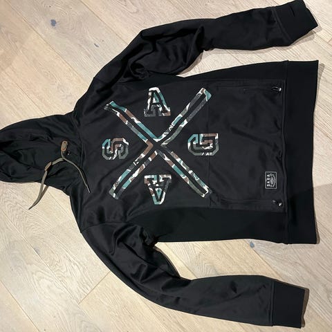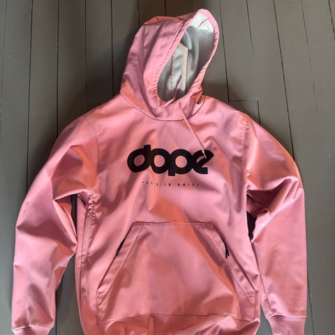 Dope unisex tykk hettegenser til utebruk i alpinbakken, i størrelse XS, Genseren har hette med snøring og lomme foran. Genseren har et trykk med fjellmotiv på både front og rygg.