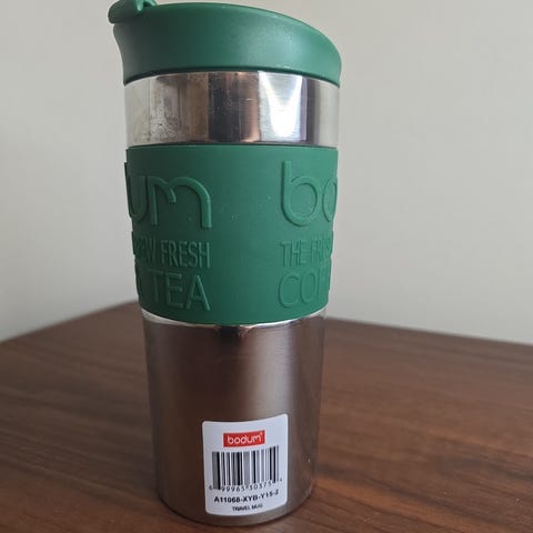 Bodum termokopp i gul farge. Designet for å holde drikker varme eller kalde over tid. Egnet for bruk med kaffe, te og andre varme eller kalde drikker.