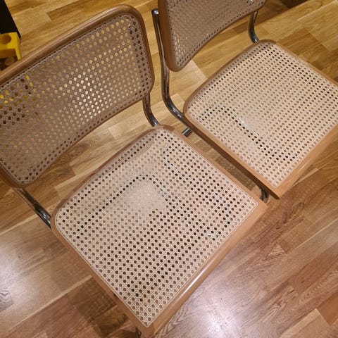 Sett av 6 stykk vintage Bauhaus stoler, importert fra Italia. Cesca inspirerte, men opprinnelsen er usikker.