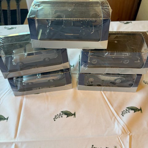 Selger en stor samling modellbiler og andre bilrelaterte ting.