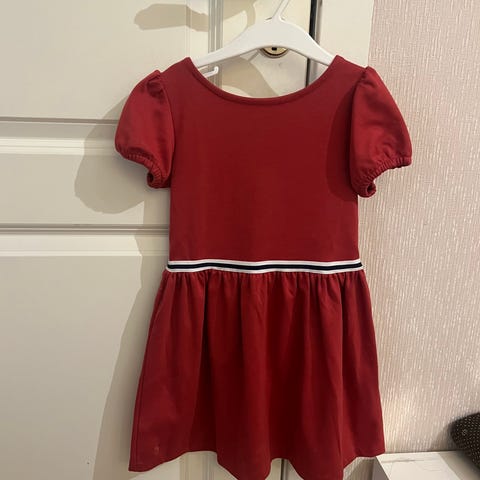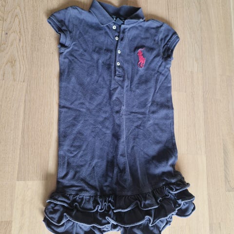 Polo Ralph Lauren kjole for jente i størrelse 110 /5 år. Kjolen er laget av bomull og har et flerfarget mønster i mørke toner. Modellen har lange ermer, rynket overdel og flere volanger i skjørtet. Passer til bruk i hverdagen eller til enklere penere anledninger.
