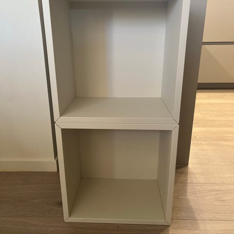 Bestå oppsett, 3 deler satt samen, kan splittes. Hver del 60 cm bred, 40 dyp, høyde 130, 60, 40