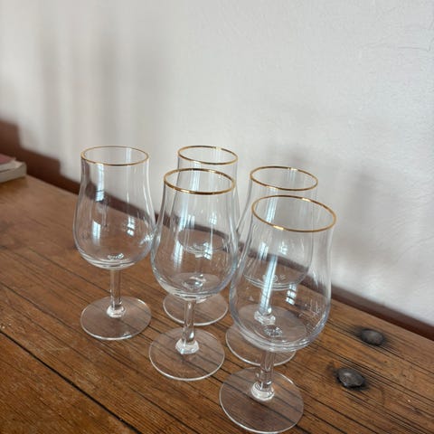 Fire forskjellige snaps glass på stett selges samlet.