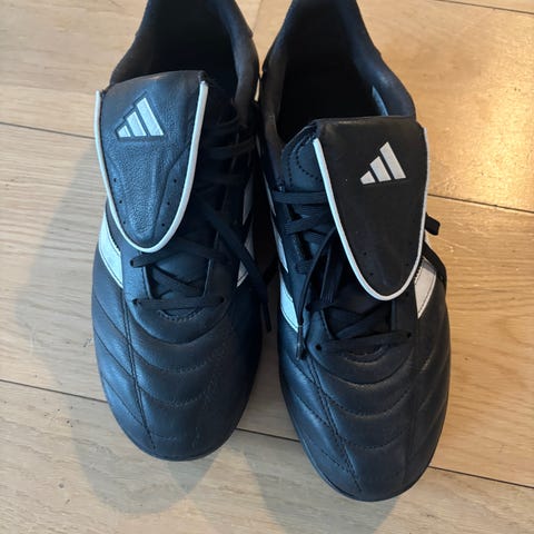 Adidas Copa Gloro fotballsko strl.42, svart med hvite detaljer. Skoene har overdel i syntetisk materiale med snøring og klassisk tungerem over lissene. Kunstgress eller grus.
