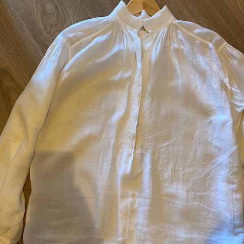 Romeriksbunad skjorte til dame veldig lite brukt, da bunaden ble for liten for meg. Ønsker å bytte skjorte inn i tilsvarende utseende/stand, dog i en noe større størrelse.