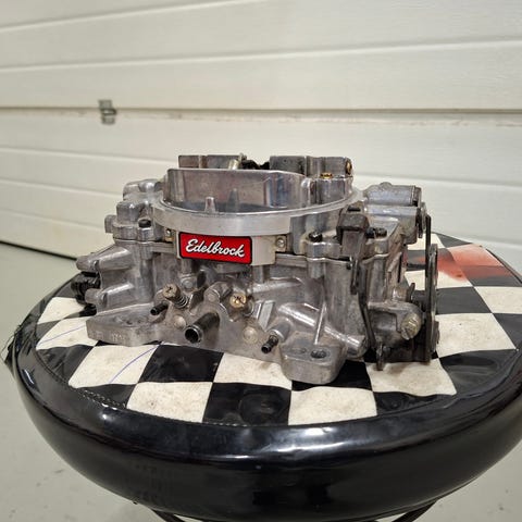 Holley 3310-4 750cfm med vacum sekundær og manuell choke selges. Den har hengt på veggen noen år.