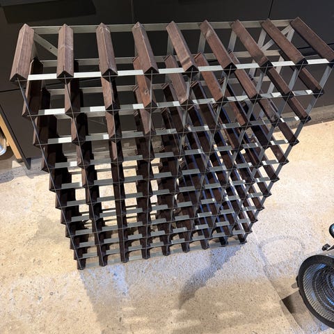 Komplett vinhylle i tre selges pga flytting. Må hentes. Delene står oppå hverandre så må ikke nødvendigvis stå slik som den er nå.
