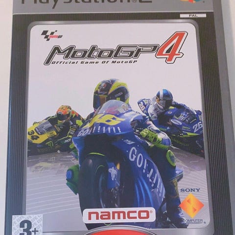 Namco MotoGP 4 Playstation 2 spill. Offisielt spill basert på FIM Road Racing World Championship Grand Prix. Inneholder motorsykkelracing med realistisk hastighet og konkurranse. Passer for aldersgruppen 3 år og oppover.