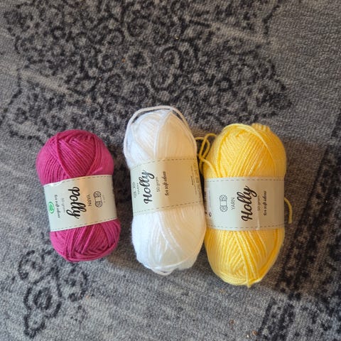 2 garnnøste selges til 80 kr. De tredje åpnet nøste er inkludert.