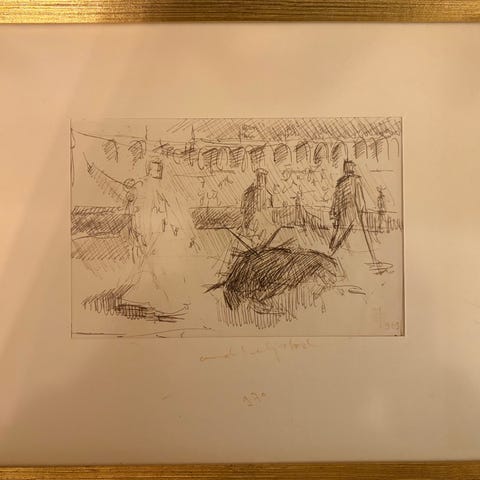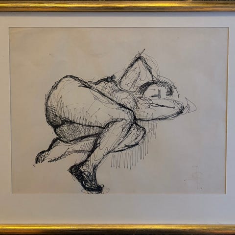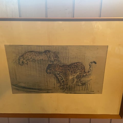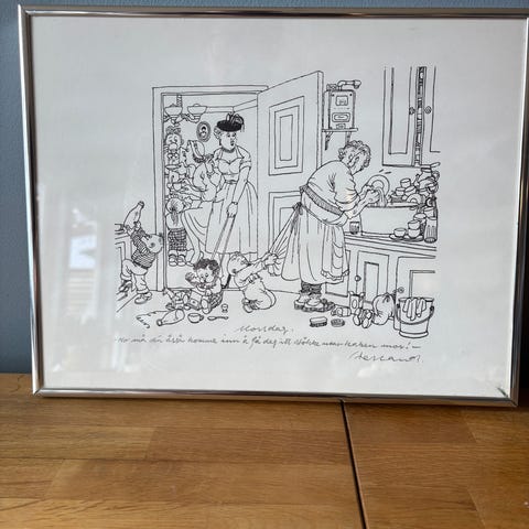 E. Jellestad signert tegning / Trykk som viser et naturmotiv med hytte og innsjø, innrammet. Sort-hvitt illustrasjon med detaljerte landskapselementer. Bildet ser ut til og være i god stand og selges for kr 850,- Bildet har følgende mål :