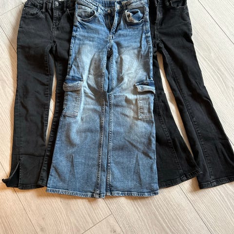 2 lite brukte bukser fra lager157. Står strl 150 i de, men tror de krympa noe i trommelen, så tipper de er mere 140/146. Selges samlet 100kr