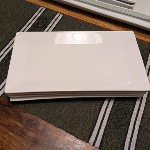 Dette er delikat porselen/glass i japansk stil – perfekt til servering, sushi, småretter eller som dekorative asjetter.