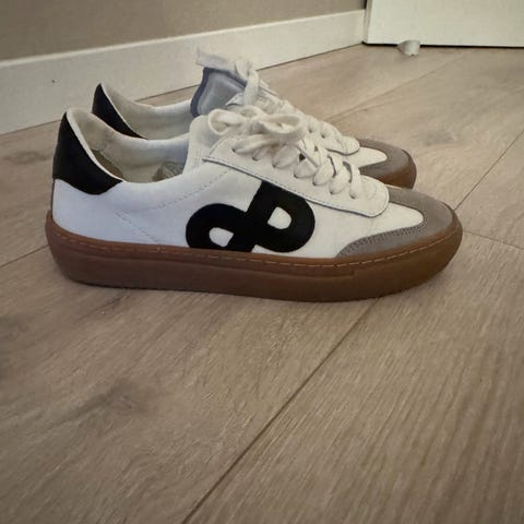 Skoene har en kombinasjon av lyse og mørke farger med mørke lisser og detaljer. Egnet for daglig bruk og ulike casual anledninger.