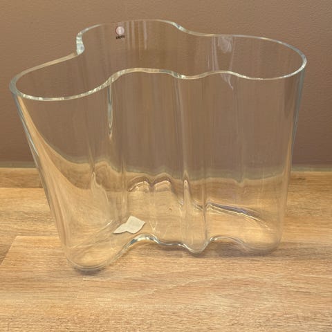 vase i klart glass med bølgete design. Høyde ca. 20 cm. Passer til dekorasjon og blomsterarrangementer.