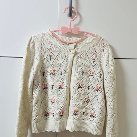 Hvit barne genseri størrelse 116 for jente. Gensern har langermet design med mønsterdetaljer.
