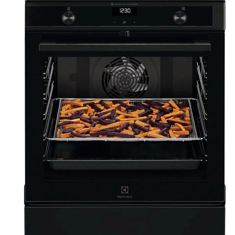 Pyrolyse-selvrengjøring gjør ovnen enkel å holde ren — matrester og smuss brennes til aske, lett å tørke bort.