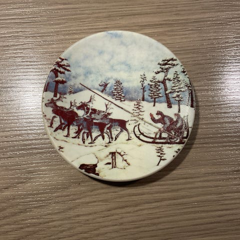 0,3 dl Arabia Jule krukke med trelokk og gummu paking...aldri brukt etikett fortsatt på...høyde 10 cm...dekorativt jule motiv...selges 300,- Postfrakt med sporing 73,-