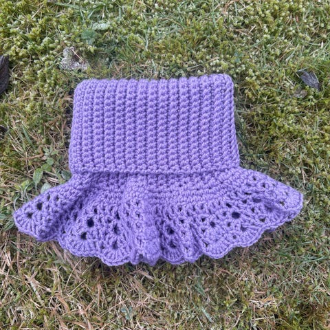 Heklet gavesett: skjerf/ pannebånd+ pulsvarmere.