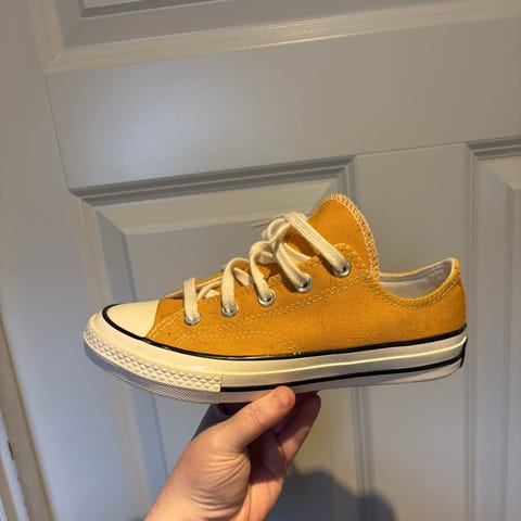 Converse unisex sko i størrelse 36. Skoene er svarte med hvite detaljer og har klassisk Converse design. Laget for barn og unge, egnet for ulike anledninger.