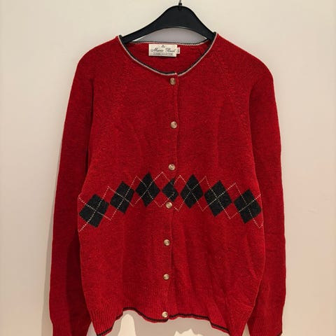 • Farge: Klar rød med elegant argyle-mønster i grå og mørk brun