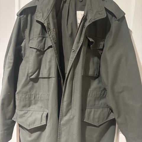 Nytt og ubrukt vintage Alpha m65 field jakke i kassisk grønn selges. Made in Usa og veldig solid, tung og god kvalitet. Original som ble brukt i Vietnam. Er i størrelsen small men kan også brukes av en som bruker medium da den er litt stor i størrelsen. Siden jakken er vintage og ligget flere 10 år på lager så følger det ikke noe etiketter/lapper med. Selges 3000kr.