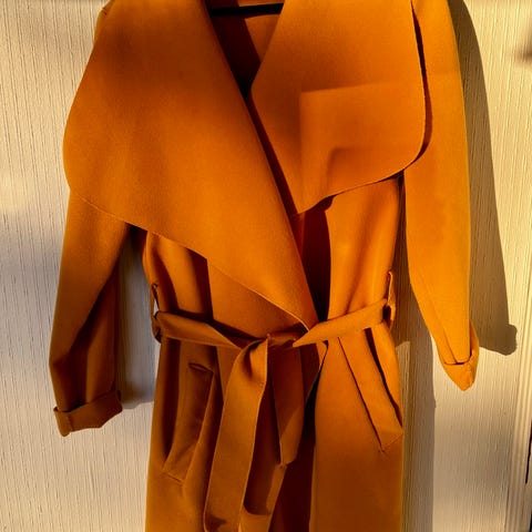 Kjempefin regnjakke fra BRGN i pen stand, hel og klar til bruk. Oransje utenpå og mørkeblå trekk inni. Hette og lommer. Klassisk design.