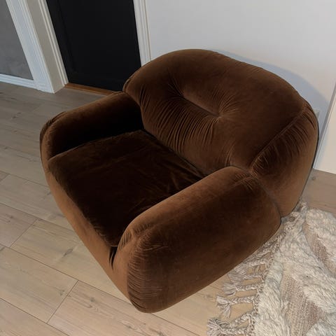 Stolen er i meget god vintage stand med normal bruksslitasje og naturlige stoffskrukker.