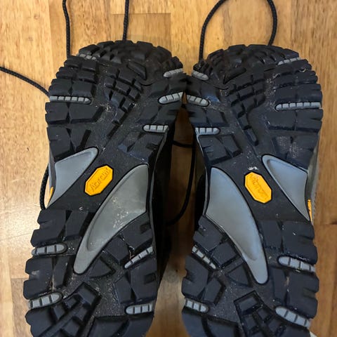Skoene har en slitesterk konstruksjon og sålemønster er intakt.