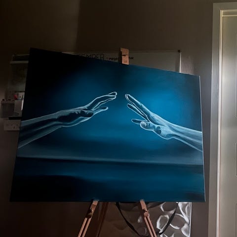 Oljemaleri på plate, ukjent kunstner men antatt 60/70-tallet.