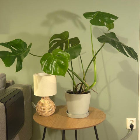 Monstera Deliciosa er en stueplante med store, karakteristiske blader. terrakottakrukke kan følge med om ønskelig.