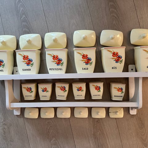 Nydelig mugge med blomstermotiv.