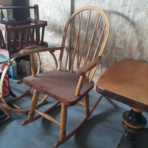 En veldig fin eldre gyngestol, solid, sterk, ikke ødelagt noe sted, stor og komfortabel...