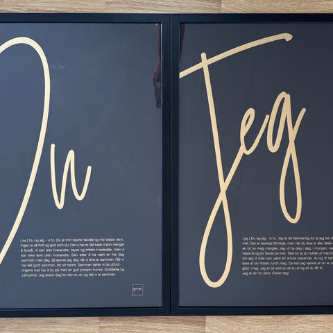 Selger disse søte plakatene fra Picture It ettersom vi har flyttet og ikke finner noen passende plass til dem i det nye huset. Gullskrift på svart bakgrunn.