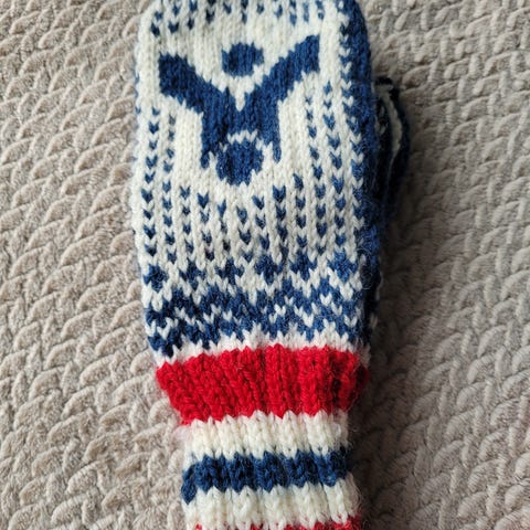 Manchester United lue til dame/ungdom. Vidde er 50 cm, lett tøyelig. Strikket med garnet Pt5 fra Rauma. Kjøper betaler event porto