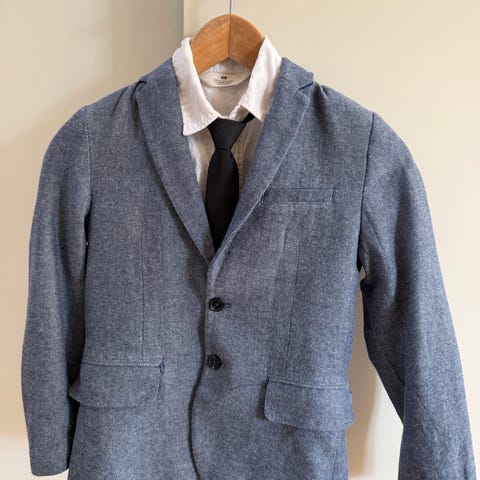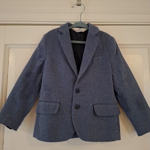 Blå blazer/dressjakke i størrelse 92 i bomull med tynt polyester inni.