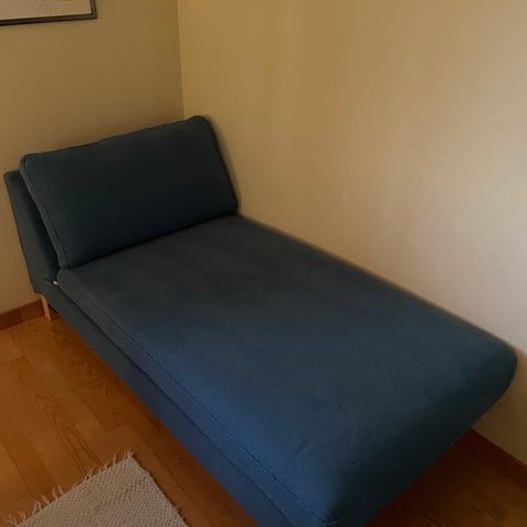 Mørk grå sjeselong fra Ikea. Merket er Grönlid. Sjeselongen er lite brukt og ser helt fin ut. Stort oppbevaringsrom under.