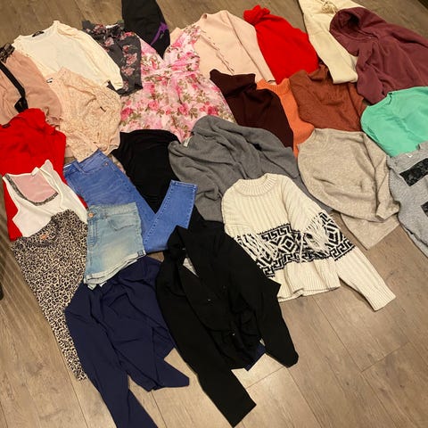 Noen plagg har nupper, noen ikke, kan ikke finne flekker eller hull. Noe lite brukt annet mye brukt.