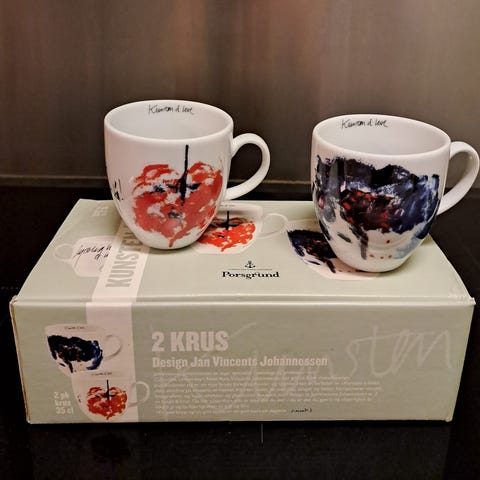 Selger to sett, ett fra prins porsgrund kopp og skål. Ett fra lokal kunstner kopp og fat. En kopp fra Florence. Ingen slitasje, merker eller skår
