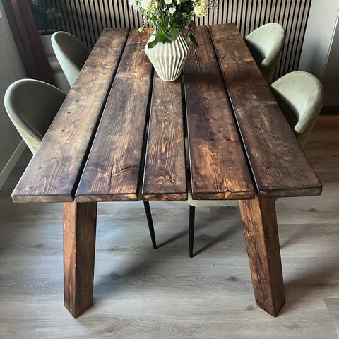 Pent brukt spisebord i Eikefinnish. 120 cm i diameter.